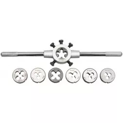 Набор ЗУБР "МАСТЕР" с металлорежущим инструментом, плашки М3-М12, плашкодержатель, - на карточке, 8 предметов 28128-H8
